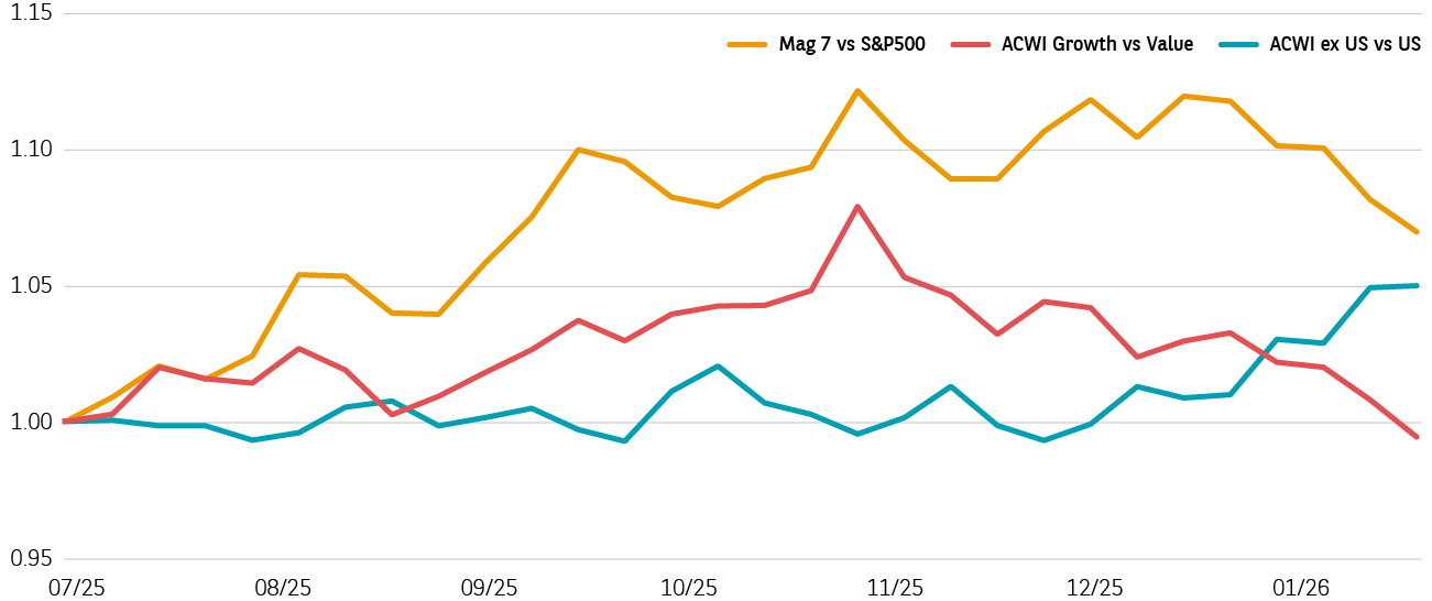 US and AI related stocks led the markets for much of 2025. But since October there has been a challenge to this leadership, triggered by elevated valuations, geopolitical uncertainties and massive capital expenditure on AI.